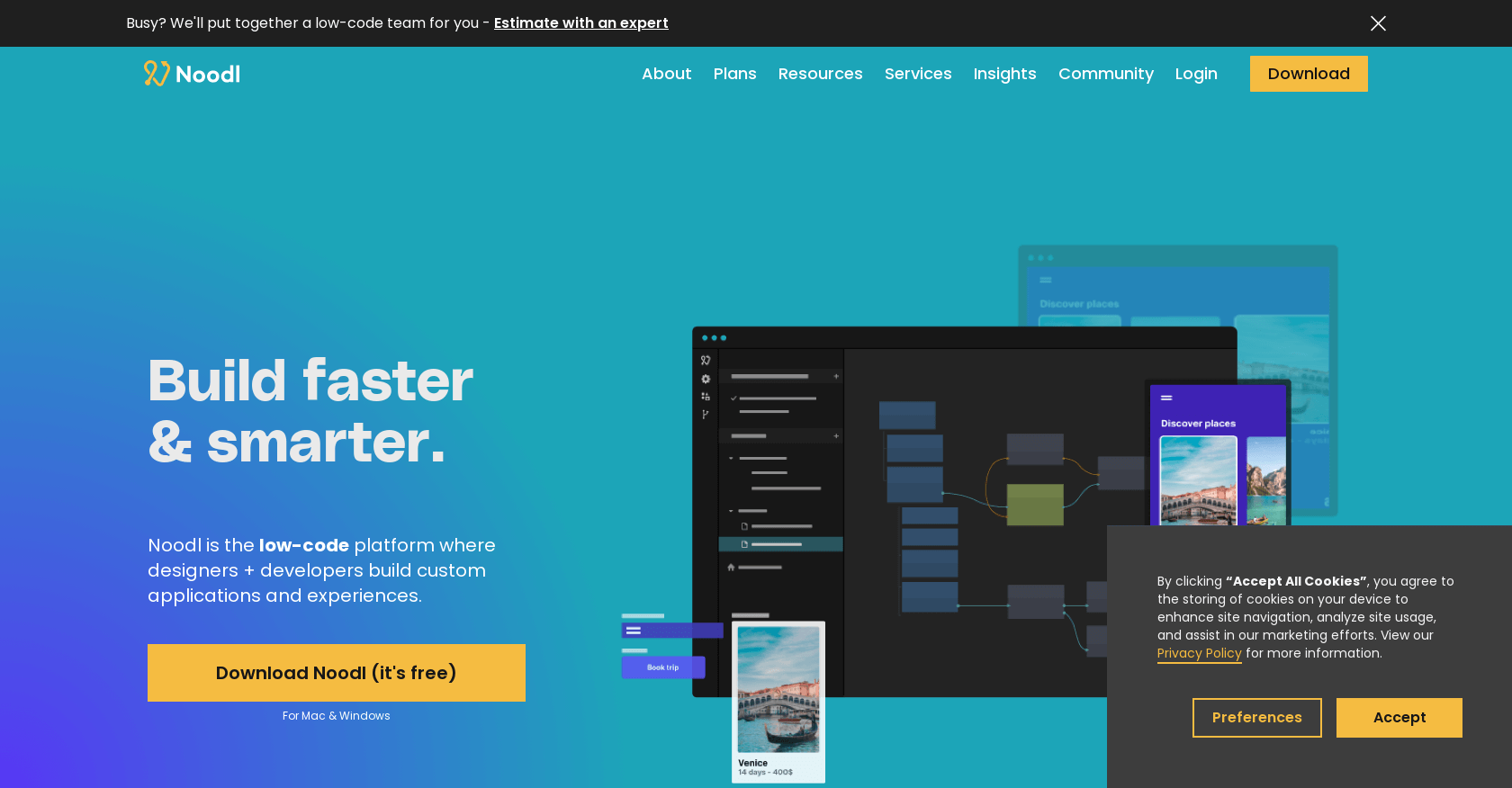 - Puissantes fonctionnalités de prototypage – Noodl fournit des fonctionnalités avancées adaptées aux professionnels, notamment la prise en charge de grands projets, l'intégration de données et l'accès à des API tierces.